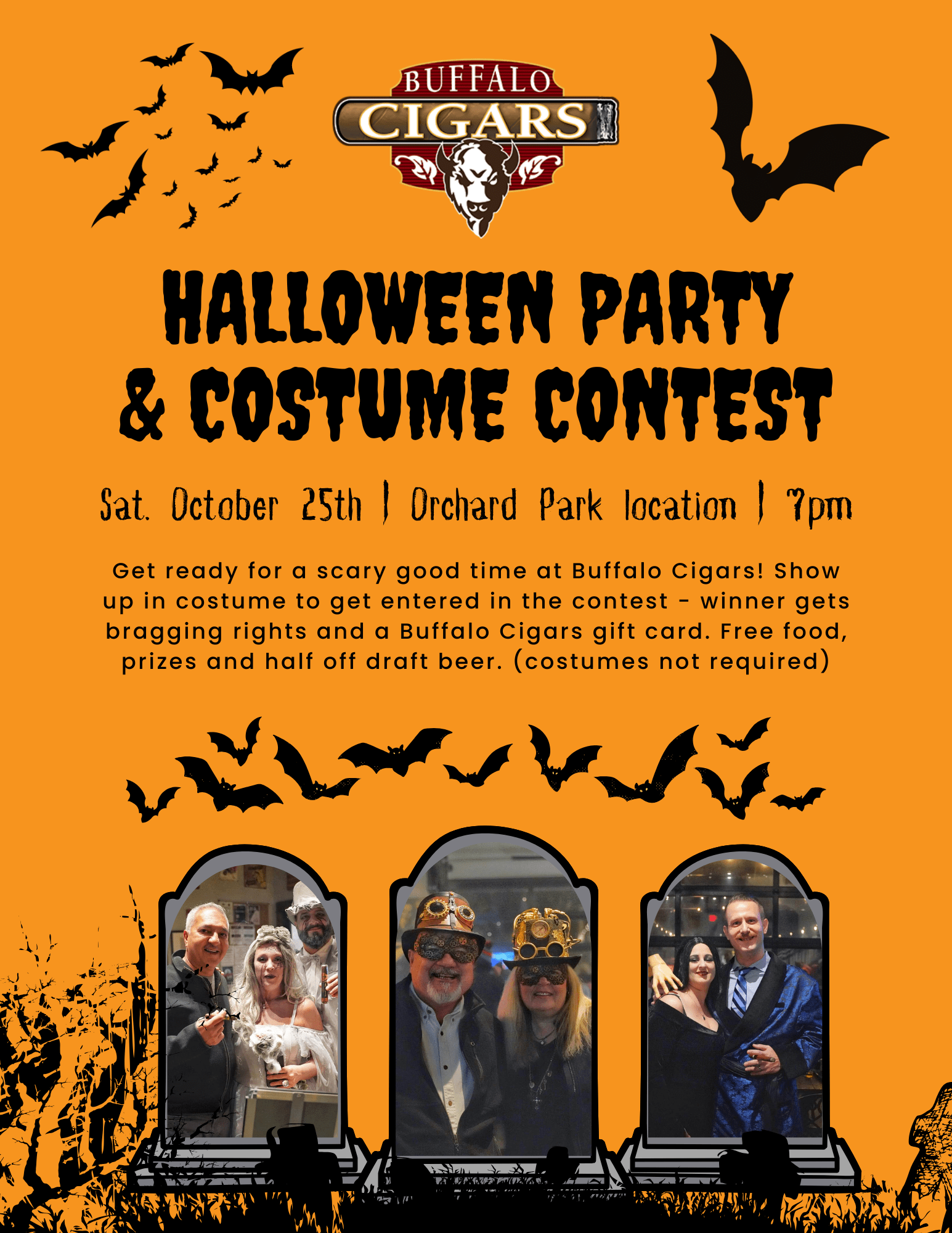 Get ready for a scary good time at Buffalo Cigars! Show up in costume to get entered in our costume contest. Winner gets bragging rights and a $50 Buffalo Cigars gift card. Free food, prizes & half off draft beer. Costumes not required.